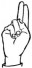 На ћирилици написано ДУШАН БАИНОВИЋ састоји се из 13 слова [?]. Исписано ћириличном једноручном азбуком за глувонеме: